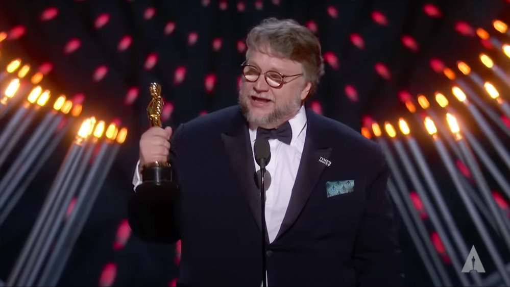 One year later, championing his art from Mia to the Oscars, Guillermo sweeps the Golden Globes and Academy Awards for Best Picture and Director.