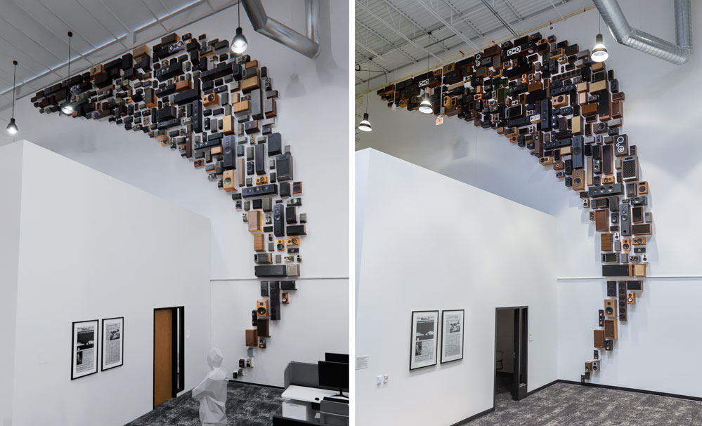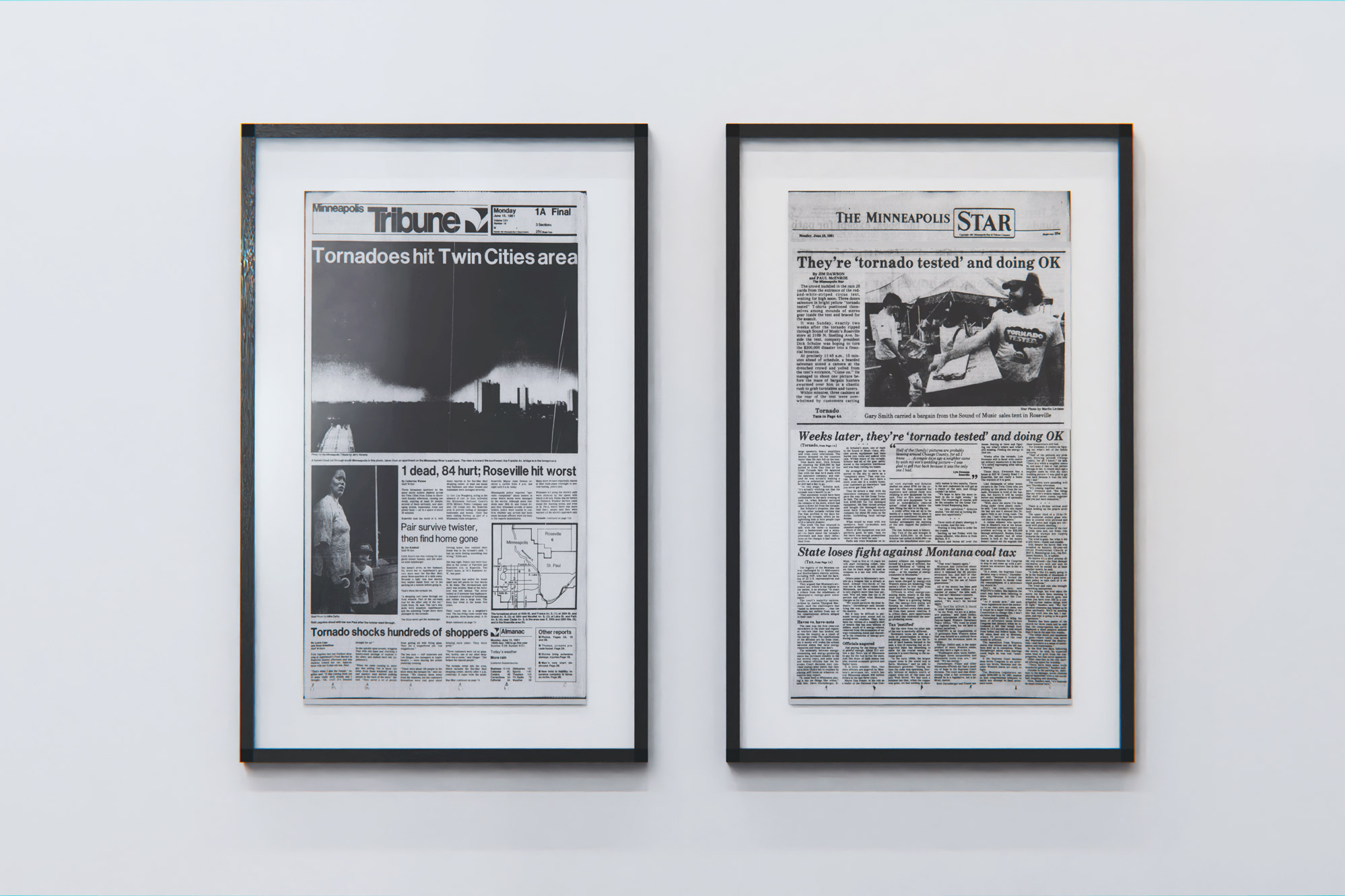These two newspapers, featured next to the sculpture, document how a tornado forever changed the course of electronic retail history. August 1981: In the aftermath of a devastating tornado, an upstart audio equipment retailer's owner, Dick Schulze, rallied his employees to sell all his damaged goods in the parking lot. Widely-advertised with "best buy" prices, after two days the unique sale ushered in the company's largest profits of the year. Having learned a valuable new approach to accessible shopping, with every product on display and able to be handled, the company's board opened their very first superstore and changed their name from "The Sound of Music" to "Best Buy".