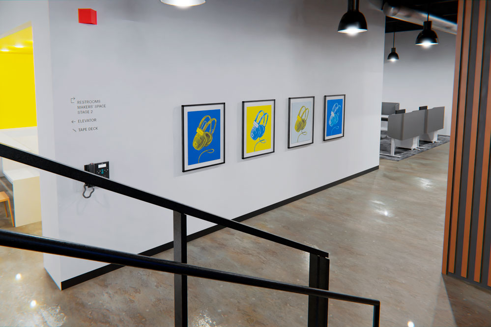 Custom 3D visualization of the studios for realtime stakeholder walkthroughs of the space while the building was under construction